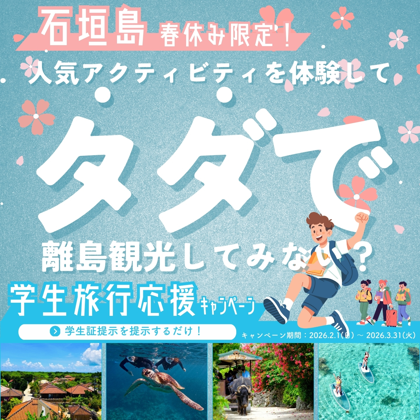 石垣島のアクティビティを体験して離島行きのフェリーチケットが無料でもらえるおトクな学割セールが開催中!
